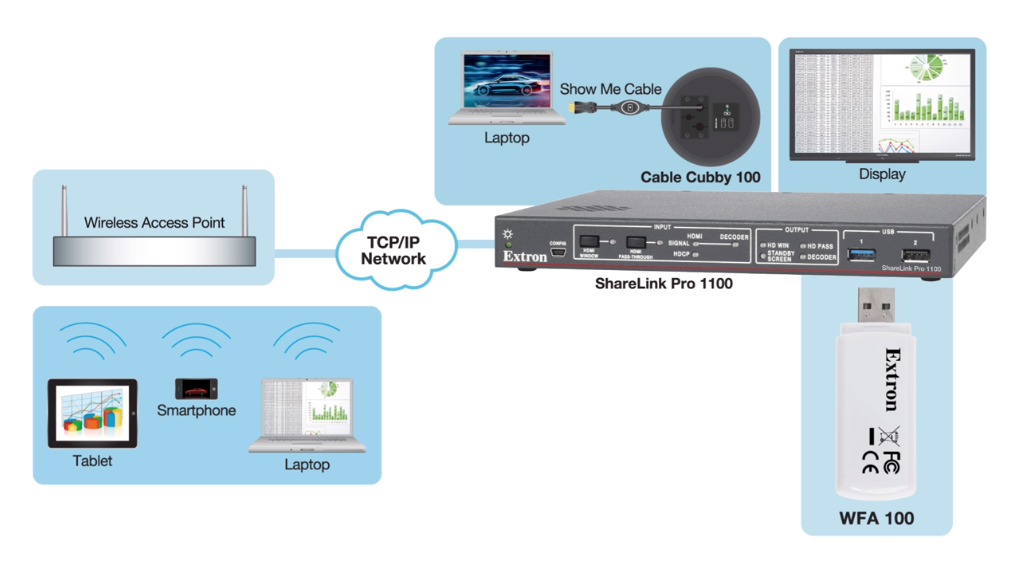 HDMI output supports computer and video resolutions up to 4K (ShareLink Pro 1100) or 1080p (ShareLink Pro 500)