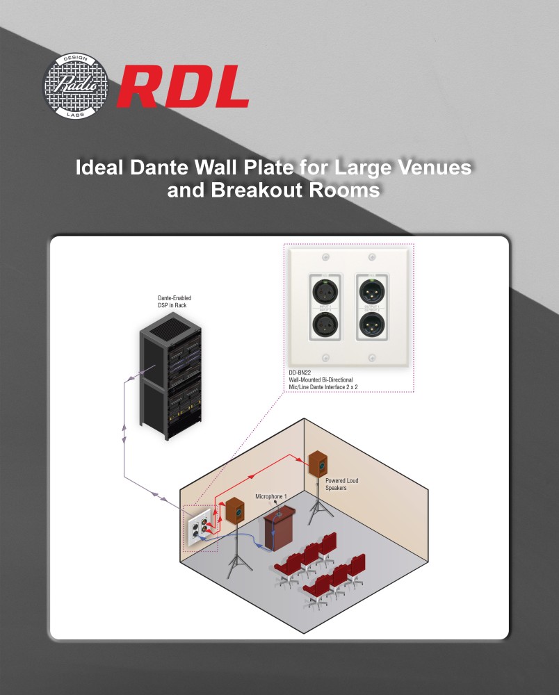 Application Spotlight features RDL’s DD-BN22 Wall-Mounted Bi-Directional Mic/Line Dante Interface