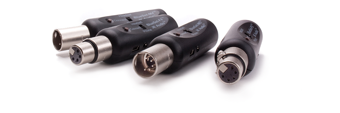 These headset interfaces plug directly into most Party- Line (PL) belt packs, replacing the wired headset. A 3.5 mm stereo headset jack contains a mic level output signal suitable for recording, with the beltpack headphone signal on the left channel, and the Bluetooth return signal on the right. A switch selects between connection to a 3rd party Bluetooth headset or a cell phone.