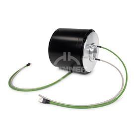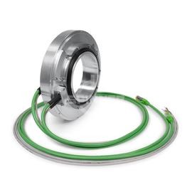 SPINNER uses contactless capacitive data interfaces for data transmission instead of slip rings. This approach permits transmission rates of up to 1 Gbit/s in Ethernet-based bus systems (e.g.: Ethernet protocol IEEE 802.3: Profinet A, B and C, POWERLINK, Bluecom, EtherCAT and Sercos III), also at very fast rotational speeds (up to 6000 rpm). 100 Mbit/s real-time feature enables transmission of various, deterministic bus protocols.