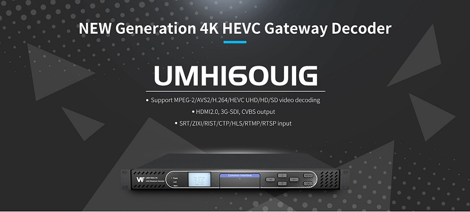 * UMH160U: A cost-effective 4K UHD receiver/decoder supporting various video and audio decoding formats, ideal for RF signal reception and program descrambling.