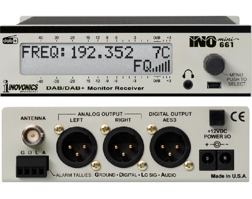The INOmini 661 is Inovonics’ second-generation, small form-factor off-air monitoring receiver for EBU-specified DAB and DAB+ digital radio broadcasts.