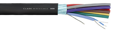 Clark's 800 Series AES/EBU digital audio multi-pair cables deliver precision 110 ohm data-grade single-pair elements in a snake cable configuration for high density applications. Built for precision impedance matching and low attenuation, each single-pair element has 24AWG tinned copper conductors, precision data-grade pair twisting and a 110 ohm characteristic impedance. To streamline installation, each pair has a color coded and alpha-numerically printed pair jacket that is easy-to-strip and bonded to the foil shield. Extra-flexible and UL rated CMR, the 800 series can be used in portable applications or installed in a variety of permanent installation environments.