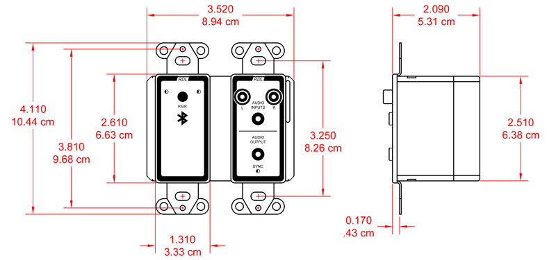 RDL Wall-Mounted Bi-Directional Line-Level and Bluetooth Audio Dante Interface -