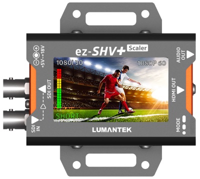 You can easily monitor in/output resolution, cable length and eye-pattern at once. LUMANTEK's ez-SHV+ has a SDI LOOP output. Through the LCD screen, you can monitor incoming video. By using the 'dip switch', you can select the resolution from 480i to 1080p. You can also control the LCD Brightness and screen ratio.