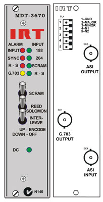 The MDT-3670 is fabricated in IRT's standard Eurocard format and may be housed in a variety of IRT's frames.