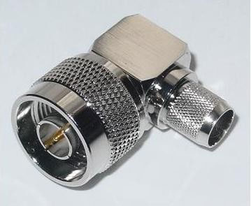 N-type Right-angle Plug Connector, gold solder centre pin, screw or crimp outer ferrule (please advise preference when ordering).