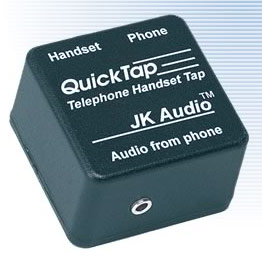 Simply unplug the handset curly cord from the base of your telephone and plug it directly into the QuickTap. Then, using the supplied cable, connect the QuickTap to the base of the telephone. Now connect your audio equipment or powered speaker to the audio output jack. This jack contains a nice mix of both sides of the conversation, as well as the tones being pressed on the keypad.