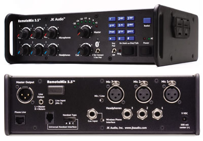 JK Audio introduces RemoteMix 3.5, a three-channel field mixer and headphone amplifier. More than just a field mixer, this is a universal communications interface. RemoteMix 3.5 features a phone line hybrid and keypad, a PBX handset interface, and both wired and wireless cell phone interfaces. These parts were designed to work together, saving setup time in the field.