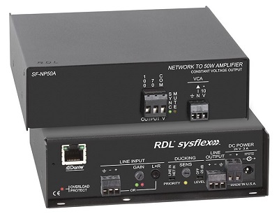 RDL Network to 50 W Mono Audio Amplifier - 70 V or 100 V - Dante - Export Model