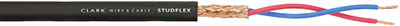 Clark's StudioFlex is a thin-profile, extra-flexible microphone cable for applications and connectors that require a reduced diameter or weight. The high strand 24AWG conductors (105 strands per conductor) have exceptional flexibility and flex-life. For enhanced common-mode and RF/EMI rejection, the StudFlex features tightly-twisted balanced pairs that are shielded with a bare copper braid. The outer jacket is extruded from a flexible matte PVC compound that is both flexible and abrasion resistant.