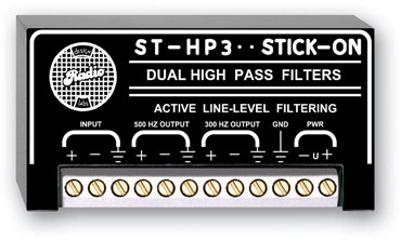 The ST-HP3 is the ideal choice where line-level audio filtering needs to be provided at the input of a power amplifier for protection of public address horns against damage from low frequencies.