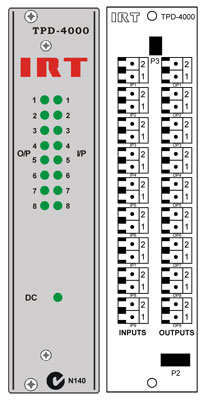 The TPD-4000 is an 8 input / 8 output solid state relay module designed to work in conjunction with IRT's 4000 series Simple Network Management Protocol (SNMP) frame.