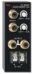 The TX-MX2R is the ideal choice in installations requiring the active, isolated mixing of two unbalanced line-level audio sources to feed either one or two unbalanced destinations.