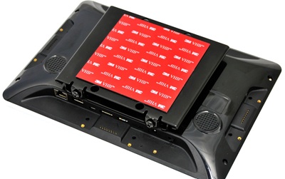 The screen can easily be removed and changed but is still protected against theft with very high bonding (VHB) tape at the glass and a security screw at the mount. Works with all Mimo monitor screens which are VESA-compatible.