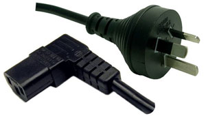 2M 3 Pin Plug to Right Angled IEC Female Connector 10A. SAA Approved Power Cord. BLACK Colour.