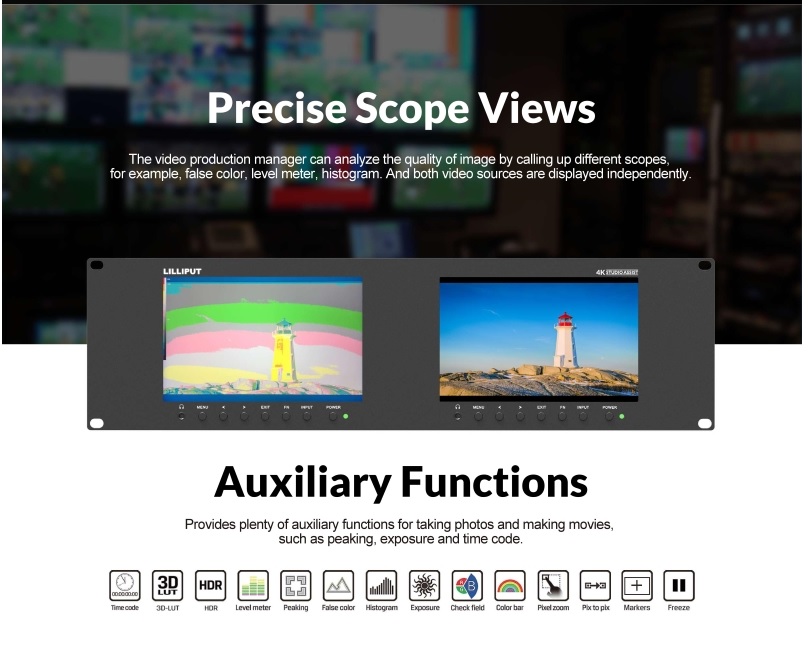 he RM-7029S-HDR Dual 7-Inch 3RU Rack mount SDI Monitor with HDR is a game-changer in the realm of video production. Its HDR technology, dual screens, precise color calibration, and real-time waveform capabilities set new standards for efficiency and visual quality. Embrace this state-of-the-art monitor and take your video production to unprecedented levels of excellence.
