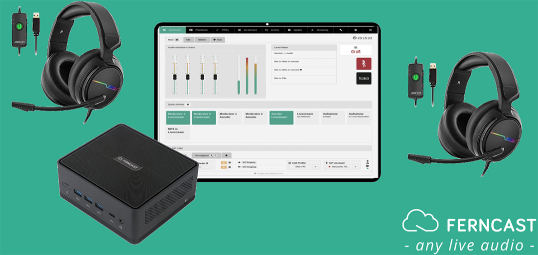 Professional high-quality answering machine for simultaneous calls, scalable from 2 to 10 programs, with the known and established aixtream COMPACT™ audio engine incl. the operating system.