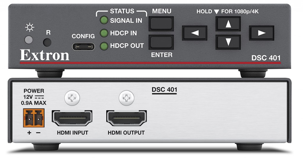 Extron is excited to introduce the DSC 401 and DSC 401 A, high-performance scalers capable of exchanging HDMI resolutions up to 4K/60 with full 4:4:4 color sampling. They support data rates up to 18 Gbps and incorporate the Extron-exclusive Vector™ 4K scaling engine. Both scalers support 4K/60 signals on a single HDMI connection. Some of the many shared integrator-friendly features include on-screen menus, internal test patterns, and status LEDs. The DSC 401 and DSC 401 A scalers are ideal for any environment where high-quality 4K scaling of HDMI signals is required.