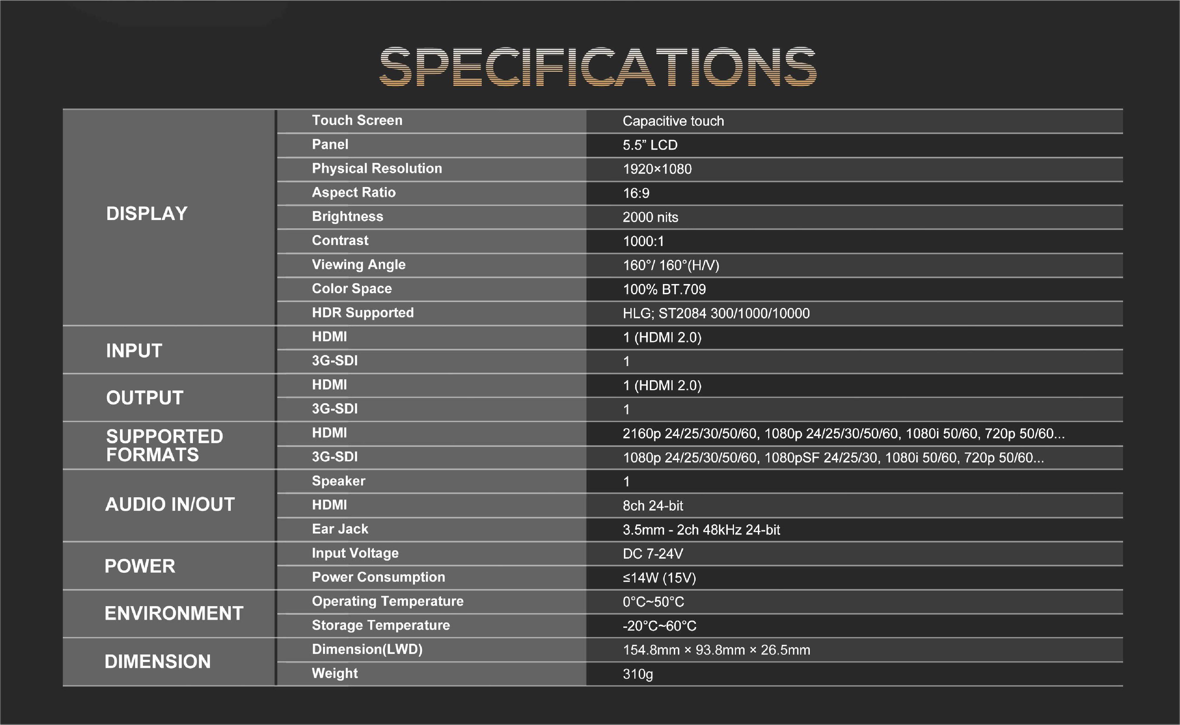 Overall, the Lilliput HT5S is an exceptional choice for anyone looking for an on-camera monitor with a range of advanced features, including ultrabright outdoor viewing, touchscreen control, Sony LANC control, HDR and 3D LUT support, and HDMI and 3G-SDI input/output options.
