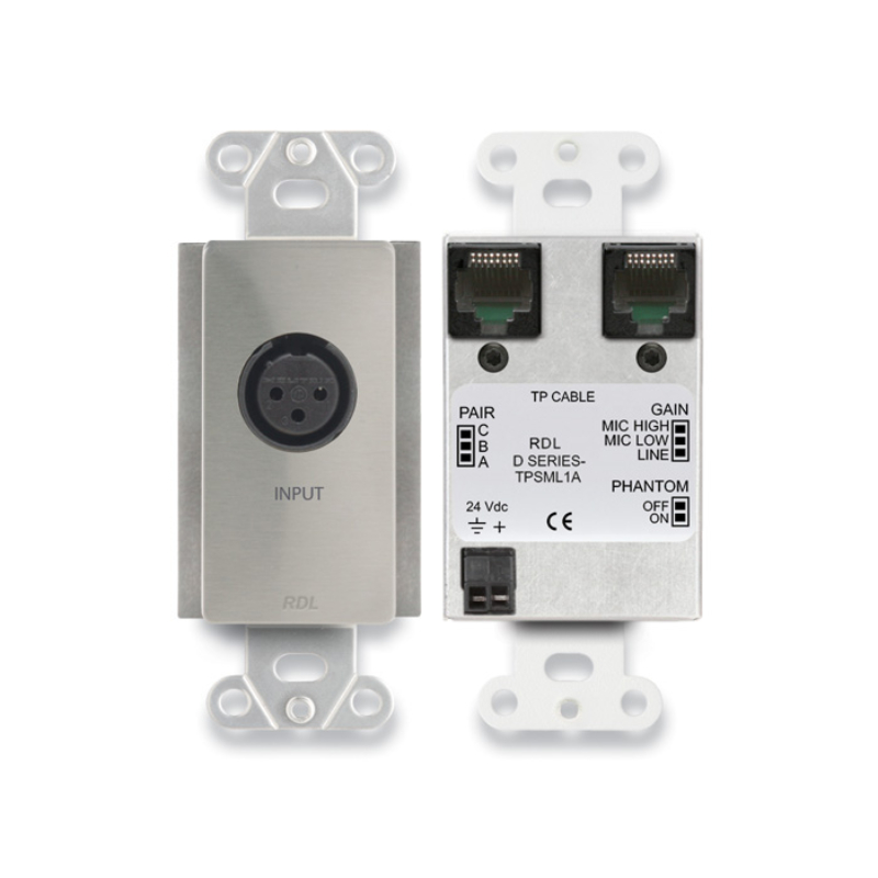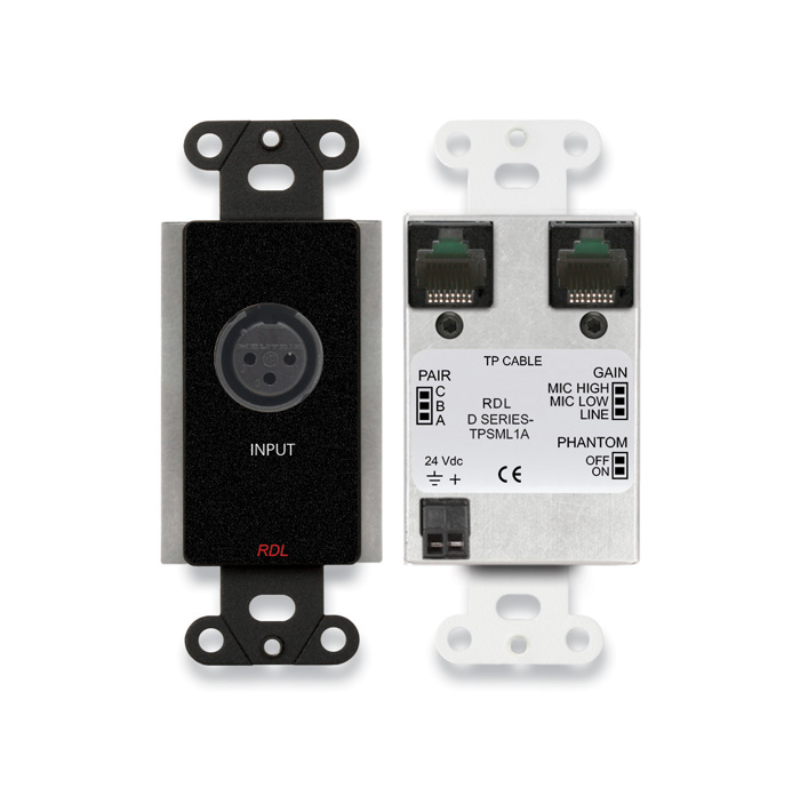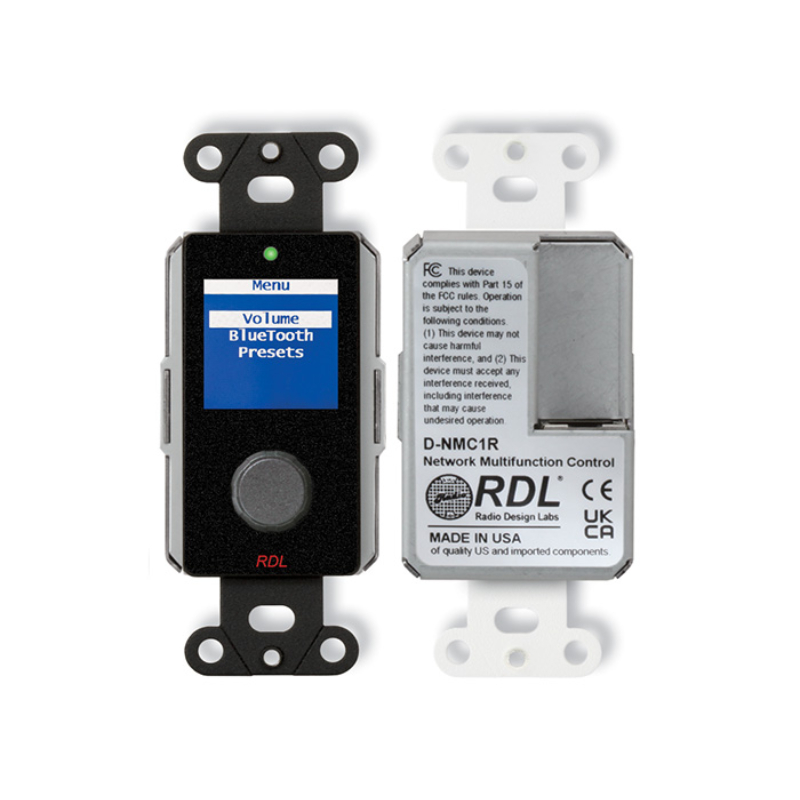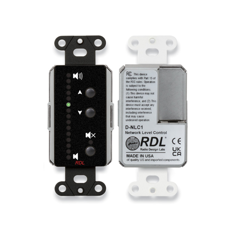The depth of D Series products is sufficiently shallow to permit mounting not only in standard North American electrical boxes but also in RDL wall boxes designed to fit in narrow walls used in international installations. RDL also offers a variety of related accessories for wall mounting, surface mounting and desktop chassis mounting of D Series products, as well as matching metal trim plates.