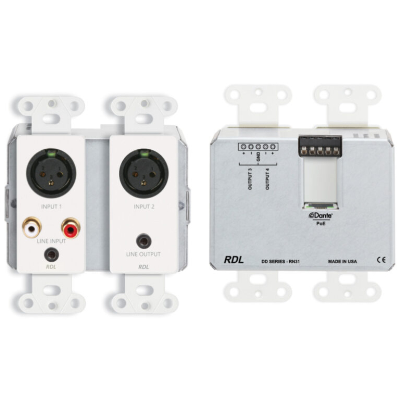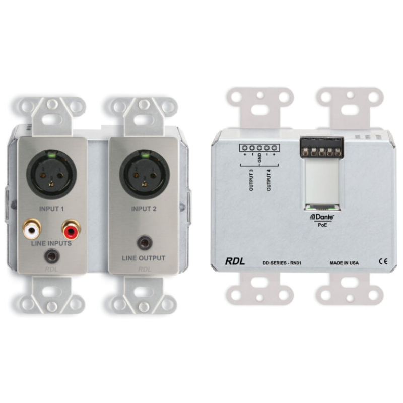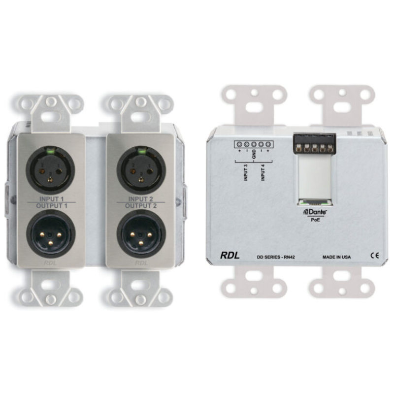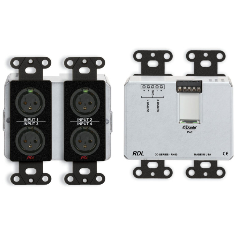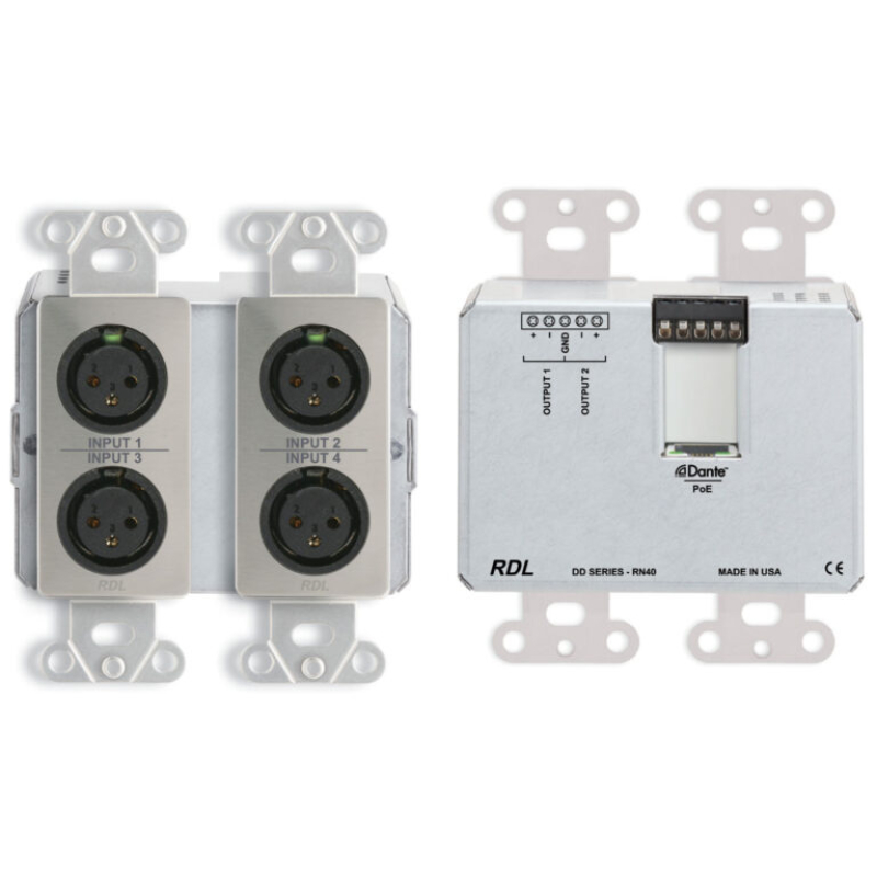 • Converts Four Dante Network Audio Signals to RDL Format-A and Aux