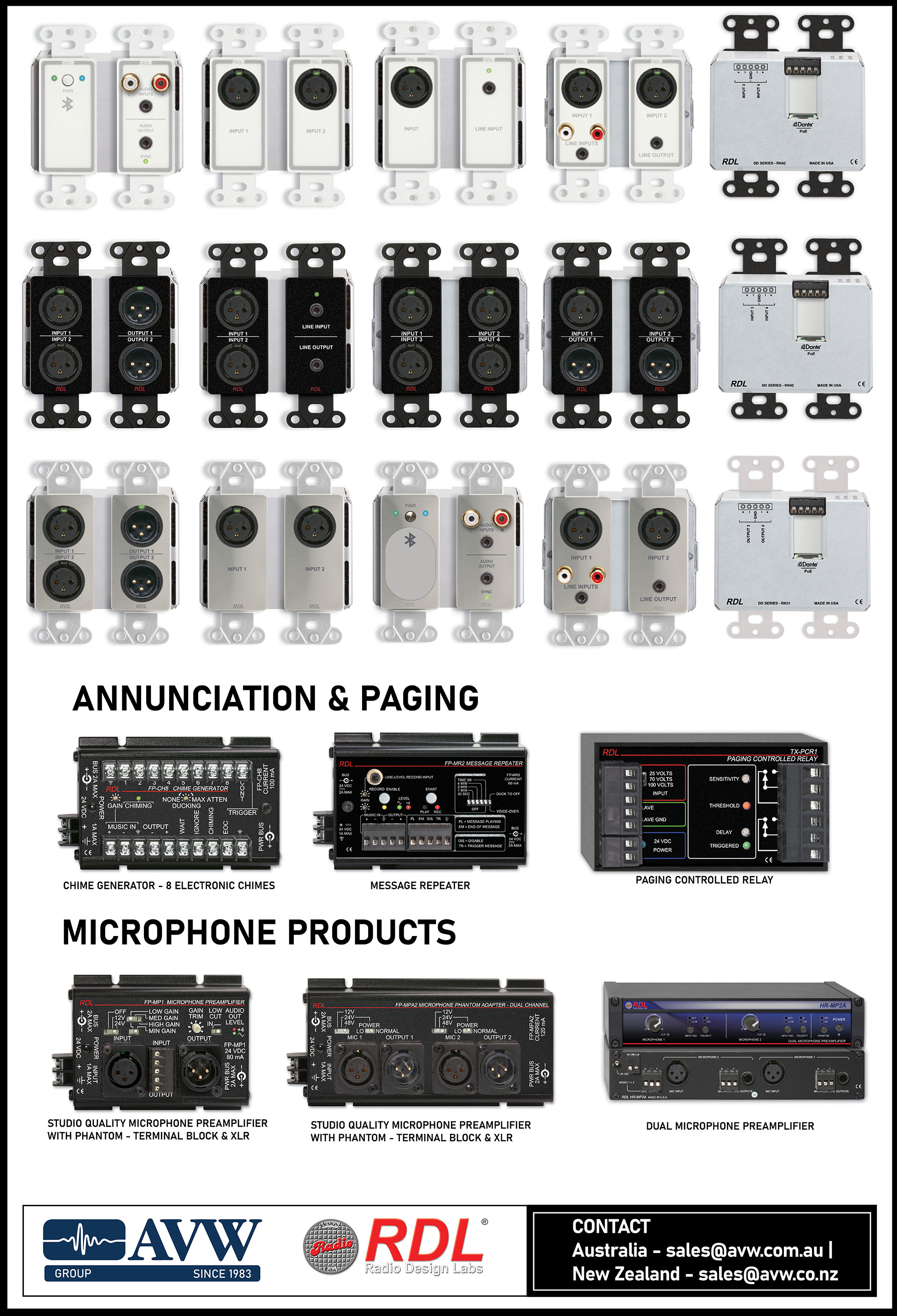 RDL’s Dante™-enabled products provide flexibility, economy and simplicity to Dante networked audio systems. The products interface standard microphone and line-level audio signals as well as the entire group of RDL FORMAT-A endpoints to a Dante audio network.