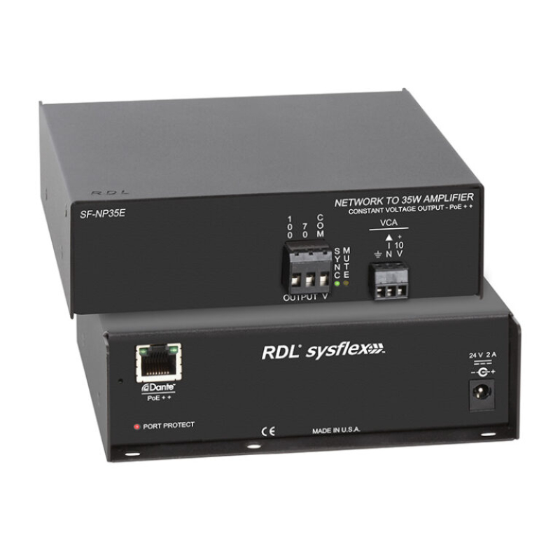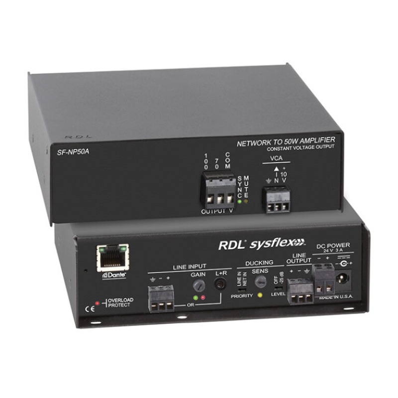 • Converts Two Dante Network Audio Signals to two 20 W Outputs into 8 Ohms