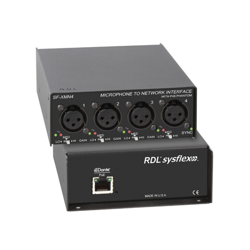 • Converts Four Standard XLR Mic Audio Sources to Dante Network Channels
