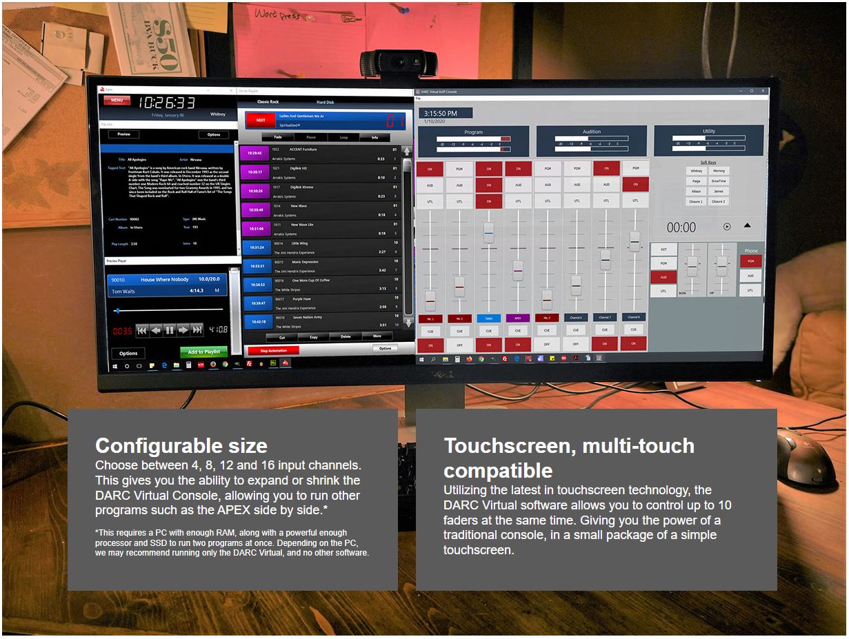 Audio over IP does not need to be complicated or expensive. With the DARC Virtual Console, you can control any Dante network audio source. Mix, adjust levels, everything you need for an On-Air or production room console.