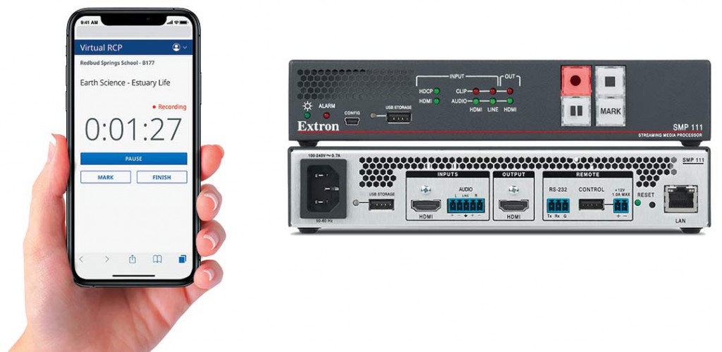 Extron is pleased to introduce vRCP, a new Virtual Remote Control Panel, which enables remote control of any Extron SMP Streaming Media Processor using the browser on any mobile device. Simply install the free vRCP FlexOS App on your SMP Series products to give users access to common functions like starting, stopping, pausing, and marking recordings.